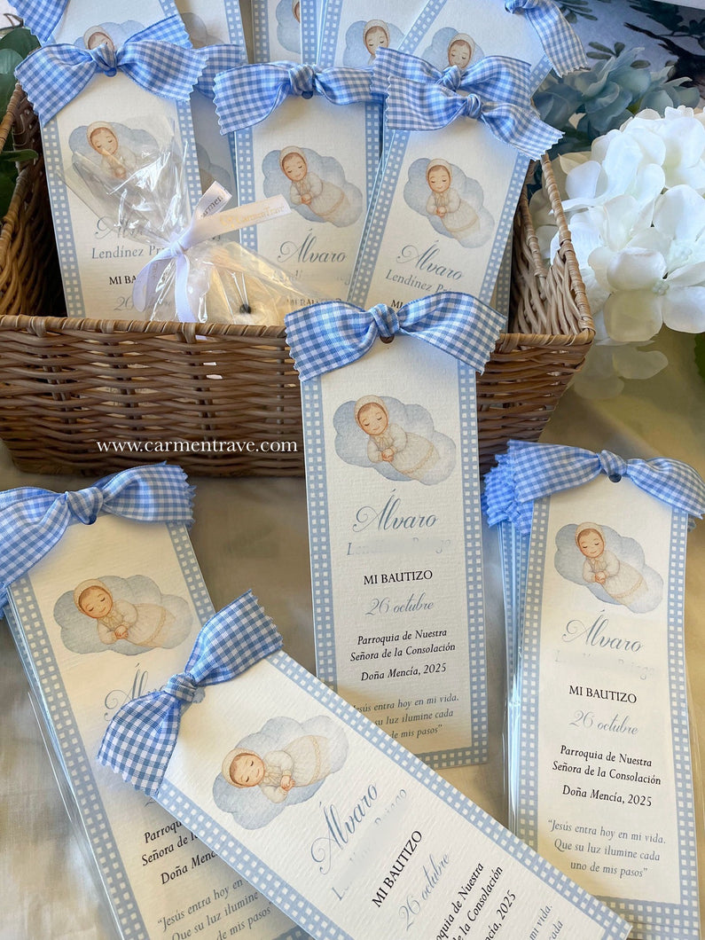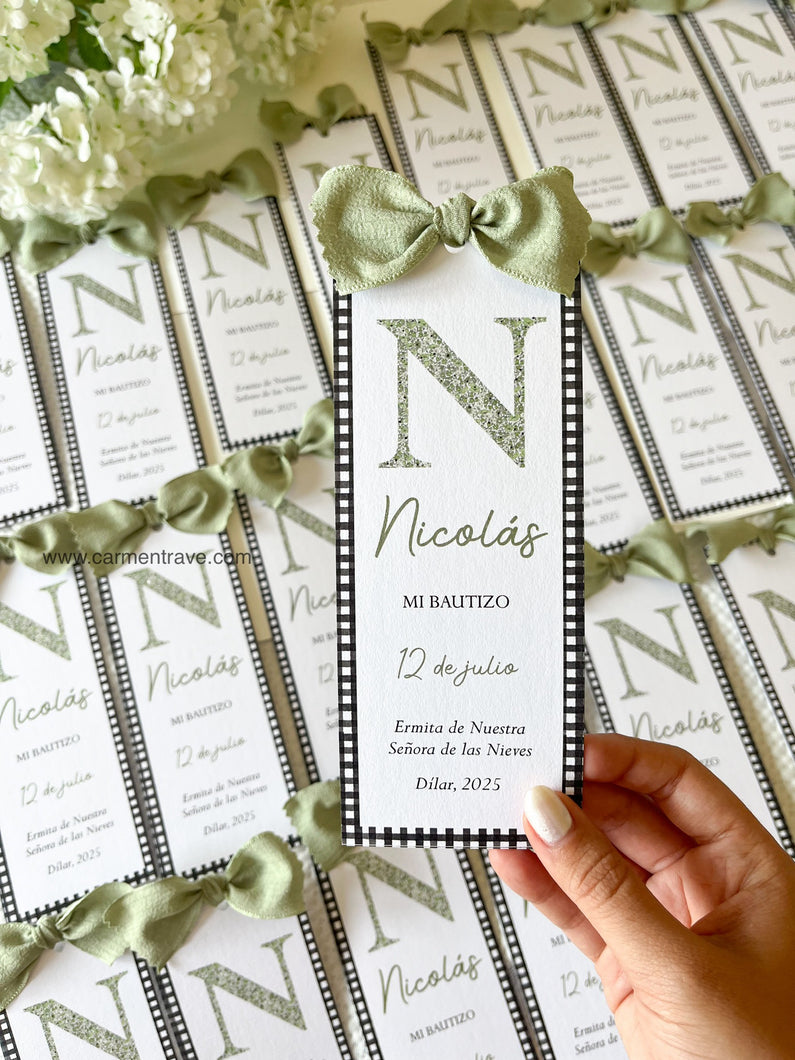 Recordatorios Bautizo y Comunión Inicial vichy con lazo