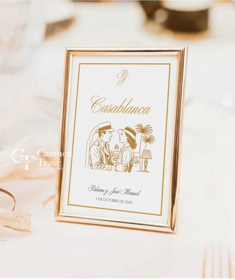 Si sois una pareja cinéfila, ¿por qué no hacer que vuestros invitados se sientan como si estuvieran en la alfombra roja? Olvidad las mesas numeradas y dad la bienvenida a las "Salas de cine’