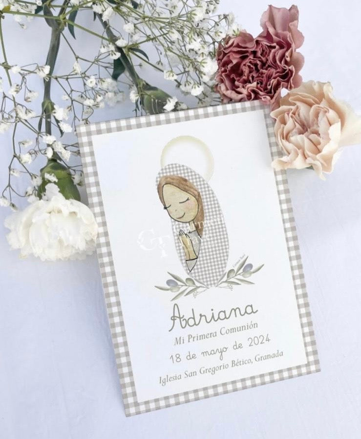 Marcapáginas para bautizo y comunión personalizables en color y lazo.