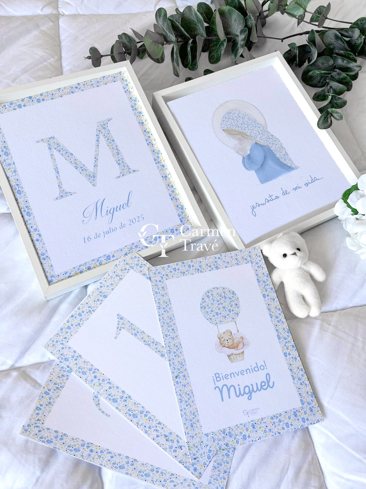 Incluye 2 cuadritos de inicial y Virgencita con marco + tarjetas cumple mes.